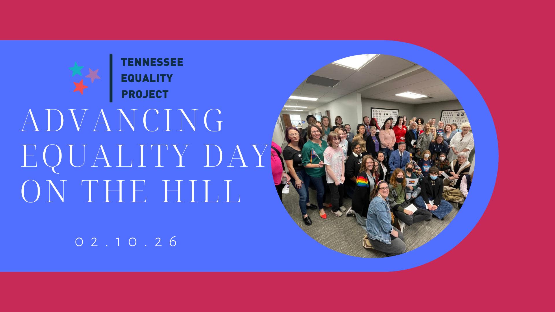 Join us and Tennessee Equality Project for the annual Advancing Equality Day on the Hill in the Cordell Hull Building (not in the Capitol). We will meet with our own legislators about bills of concern to the LGBTQ+ community.