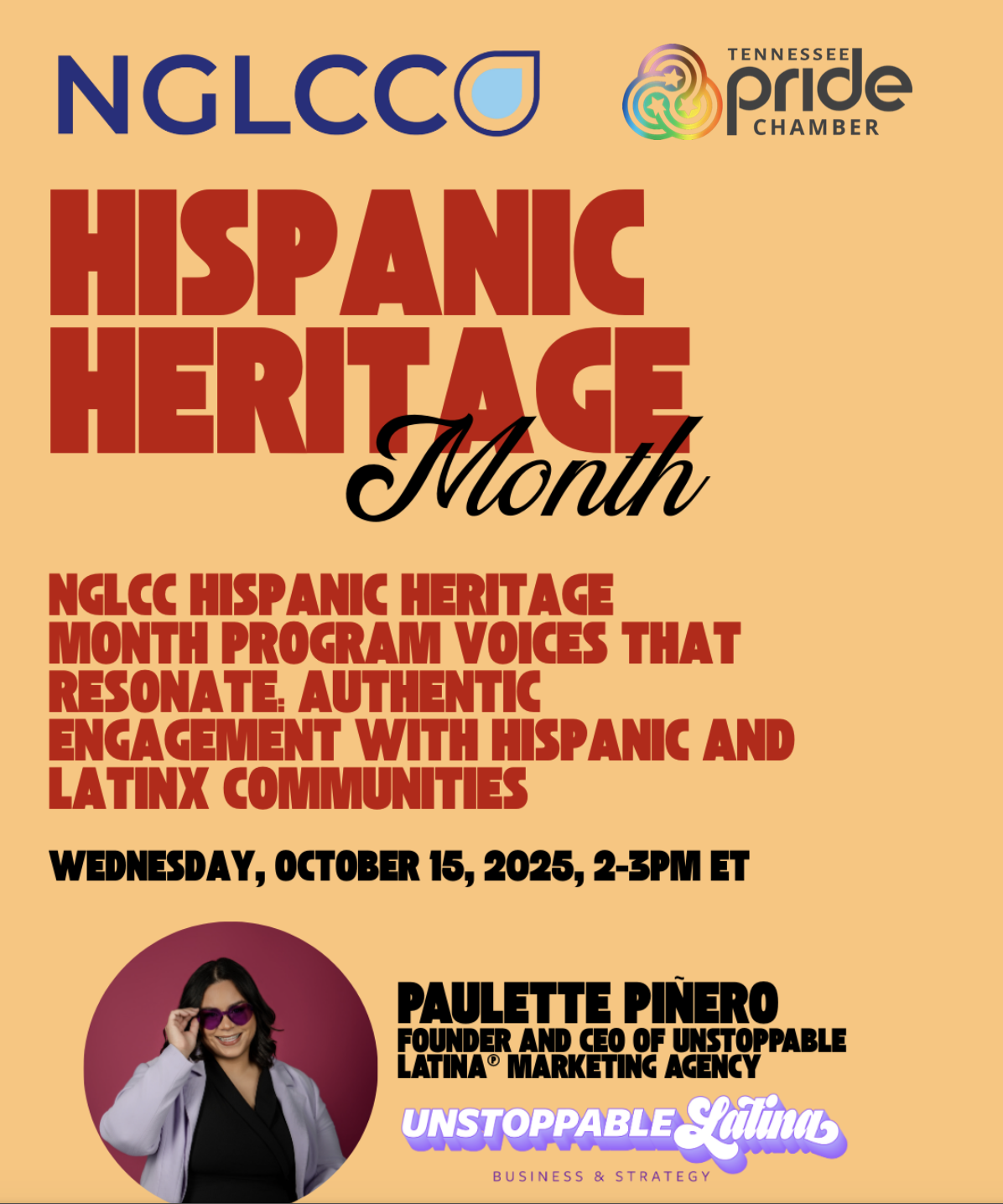 Join NGLCC’s Heritage Committee and Tennessee Pride Chamber in celebrating Hispanic Heritage Month with Voices That Resonate: Authentic Engagement with Hispanic and Latinx Communities.
