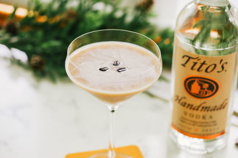 Add all ingredients to a shake with ice. Shake and strain into a martini glass. Garnish with espresso beans.