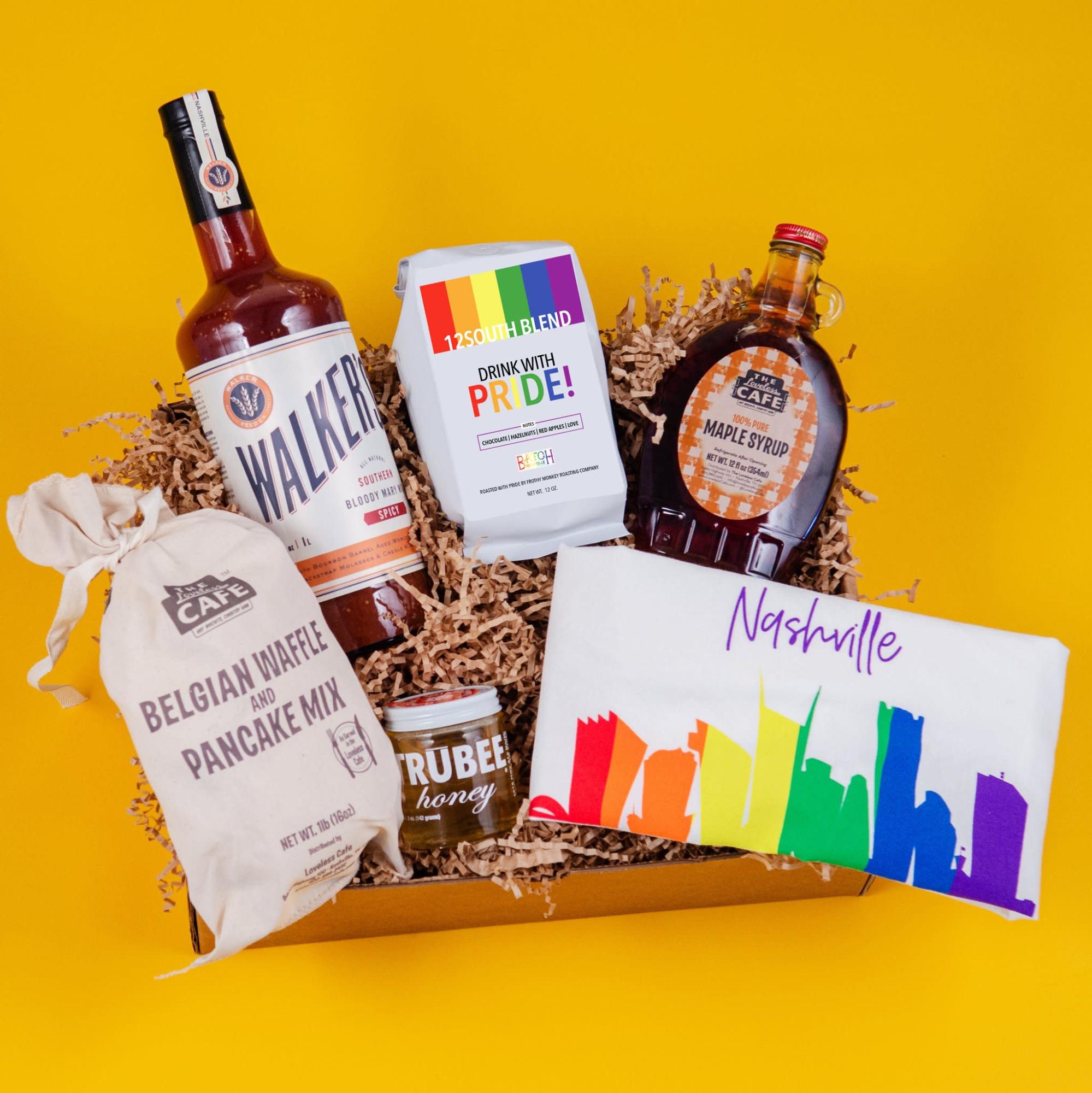 The Nashville Pride Brunch Gift Set retails for $95 and is a great way to give the gift of brunch at home. The set features an exclusive coffee label from Frothy Monkey.